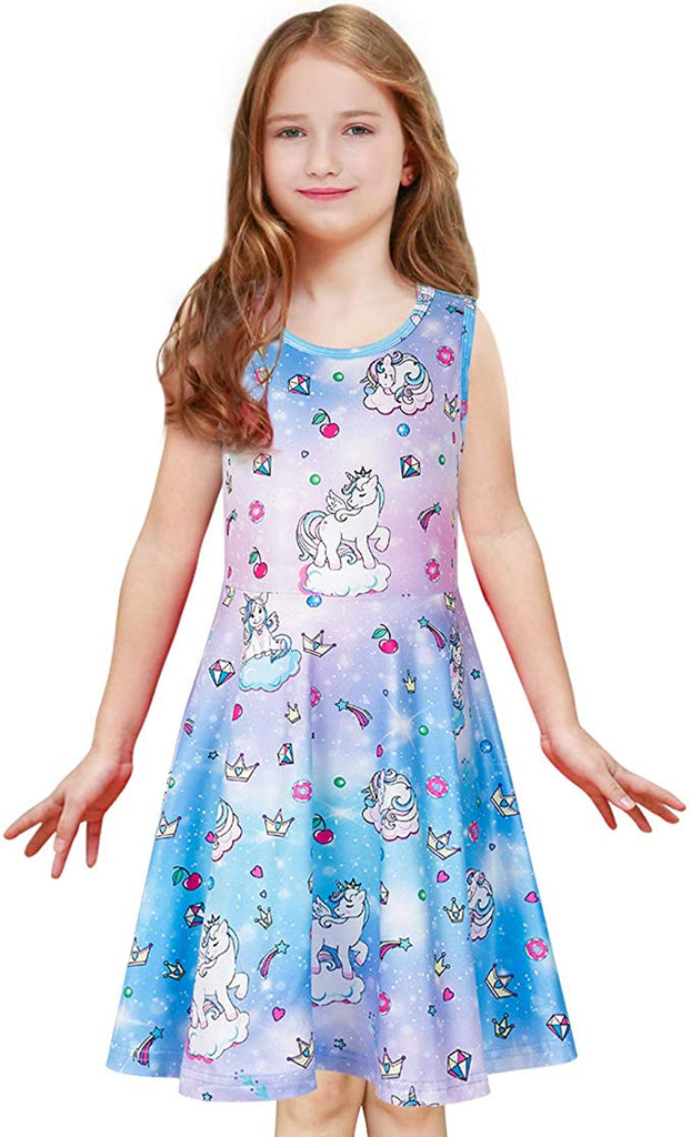 ✤ ✤ Exquisite design for Unicorn Dress--A-Line hemline, sleeveless, high waist, round neck twirl dress,popular unicorn character and rainbow printed. Knee length for summer, spring and fall with jacket, coat, shirt, blouse and ect. Your little angel will be most beautiful and attractive!✤ ✤ Soft material for Summer Dress--Stretchy, lightweight and comfy polyester fabric without fading and pilling. Skin friendly and breathable. This girl holiday dress is a best gift for your daughter, family c...