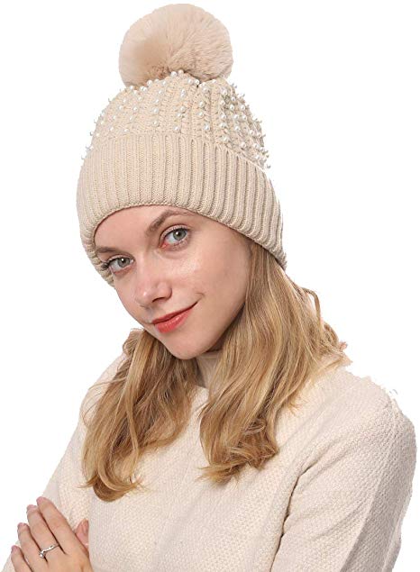 100% Acrylic【 Material 】 This Warmer Beanie Is Made by 100% Soft Acrylic ,the Top Decorate with Faux Fur Pompom, It's Thick and Comfortable,which Is Fashion and Make You Feeling Warm.【 Size 】white beanie for women with elastic, one size with good stretch, head circumference: Approx 19"-25.5"(48-65cm) that will fit most people head size.【 Design 】 The Slouchy Beanie with a Fur Pompom, We Use One Color of the Hat When They Combine Together Will Look Matched. Also, the Hats Decorate with Full Pe...